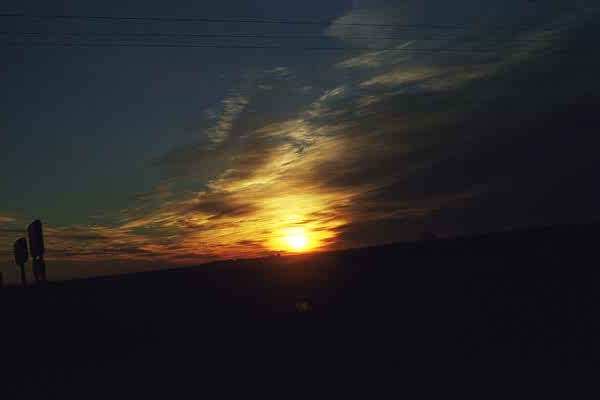 I watched a very pretty sunrise this morning as I drove east on Route 50. It was another journey alongside the Santa Fe Trail. Along the road I see endless acres of farmland and cattle, and intermittently I drive through a small town. I find this so much more interesting than driving the controlled access freeways! Each town, though somewhat similar to the previous town, seems to have its own character. And the posted markers and information are enjoyable and educational to read. Another interesting sight is the extremely large flocks of birds I occasionally see. There must be hundreds grouped together at times, and parts of the sky are blackened behind them.