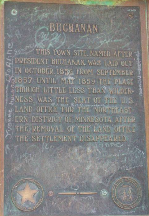 A historical marker discussing Buchanan, Minnesota. |