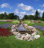 I drove in a northwesterly route, and after a couple of hours, I reached my first objective. After a vehicle safety inspection by North Dakota State Police, who were stopping all cars on the road, I entered the International Peace Gardens. This area is located on a large piece of land donated by the U. S. and Canada in 1933, and developed under the representation of the peaceful relationship between Canada and the United States. I was fortunate to meet Brad, a summer worker at the gardens, who gave an excellent tour of the grounds. It is an incredibly beautiful place, with many lovely plants, trees, shrubs, statues, fountains, and other items to enhance the experience. Please see the link for more information on the history and ideals of the project.