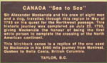 At a visitor center along the highway, this stone and plaque were dedicated to Sir Alexander MacKenzie. He and a group of eight others were the first white people to cross the continent. |