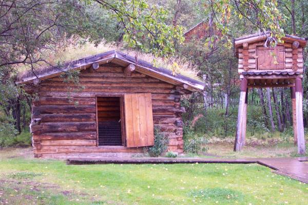Another view of the cabin, where actual logs from the original cabin were used in construction. |