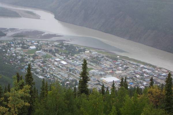 A view of Dawson City and the Yukon River from Midnight Dome. |