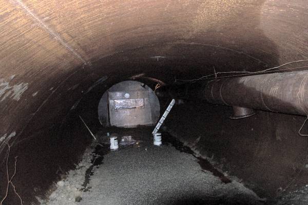 There are many ways the pipeline is marked. This point is 450 miles from the northern. The distance in feet are also posted. |