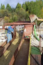Water is pumped from a pond on site and washes the material in the sluice. |
