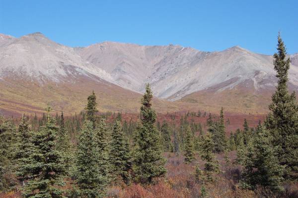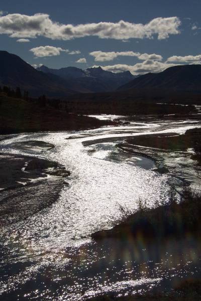 Drove south along Parks Highway, many spectacular views of the Alaska range, especially Mount Denali