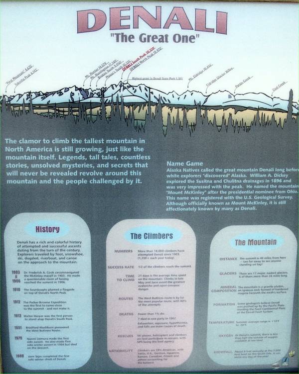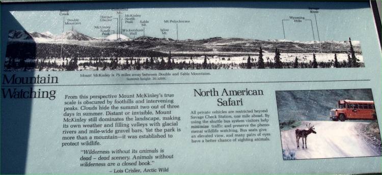 I stopped at an overlook enroute to the Denali National Park and Preserve. This panel describes the park and some of the animals in the area. |