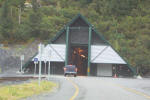 The shack in the center left of the picture is the entrance building. This tunnel leads to Whittier, Alaska. |