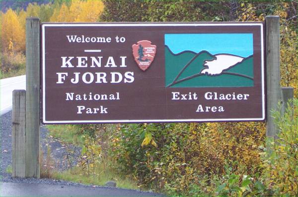 The entrance sing to this section of the Kenai Fjords National Park. |