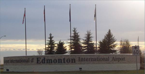 Leduc is about 19 kilometers south of Edmonton, across Route 2 from the airport. It offers lodging and food for the air traveler, and may also be connected to the railroad. I will do some research and update. (Cheryl, do you know much about Leduc?!?)