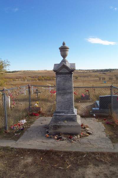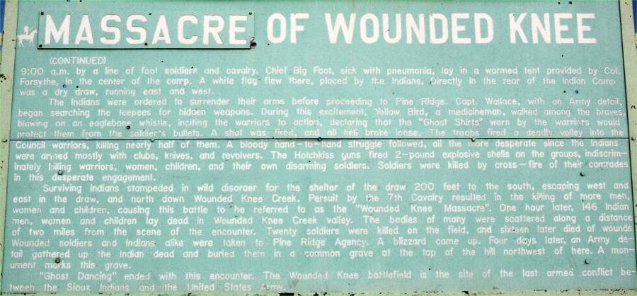Stopped in the town of Wounded Knee. Visited cemetery on hilltop with memorial to killed Indians. Jerry Elk, a local native, stopped by to describe the scene at the base of the hill as it was during the massacre.