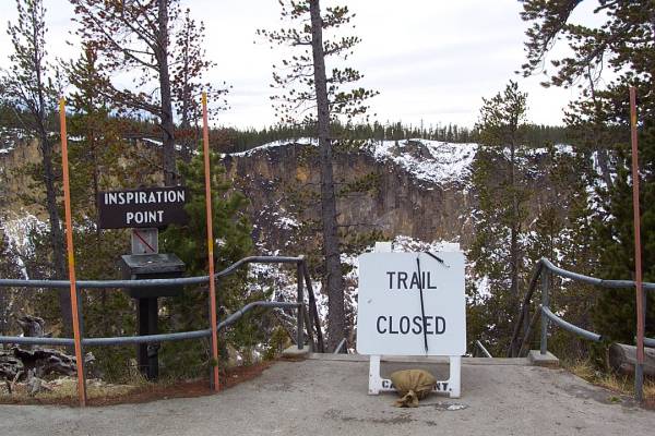 Today I explored more of Yellowstone, and saw more wildlife, hot springs and geysers than one can imagine! I stopped in West Yellowstone, Montana this evening to be in position to complete my tour of the park. Thirty-three miles of road are closed for construction or snow, but I am taking advantage of the remaining available roads. West Yellowstone is at the west entrance of Yellowstone Park, and has many services for the tourist. It is quiet this time of year, but many of the shops are still open.