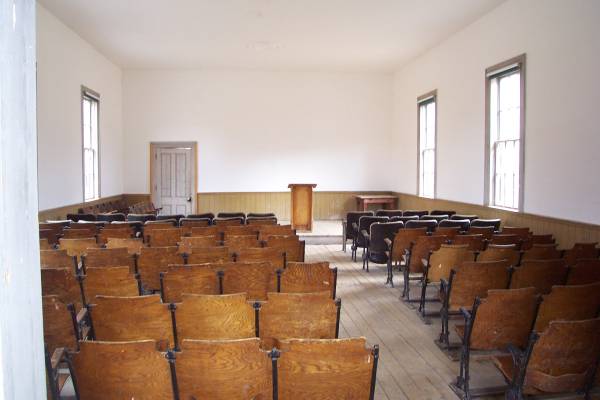 Upstairs, the Mason Hall. Downstairs, the one room school. |
