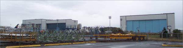 These doors slide open in four minutes to allow completed aircraft to be released out of the building. The openings are approximately 380 feet wide! |