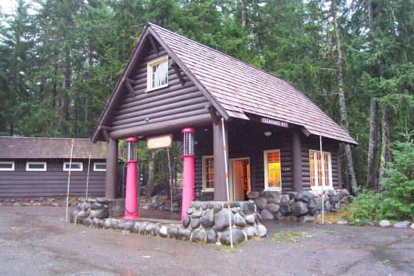 Today was a bit moist with periods of rain and snow. I was able to see the blue sky through breaks on the clouds on several occasions, but the sun was very diffused. The drive, however, was still nice. I was able to see many waterfalls along the rock walls beside the road, and some of the Autumn yellow leaves were glowing in the dim areas surrounded by trees. At the end of the day, I found the town of Morton, and this motel. Lumber and farming are supported by the town, as well as tourism due to its close proximity to Mount Rainier and Mount St. Helens.