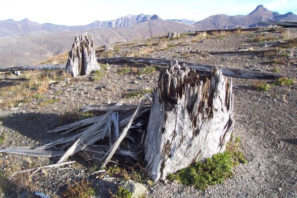 Johnston Ridge, visible in the foreground, had water and mud flow over it during the eruption. |