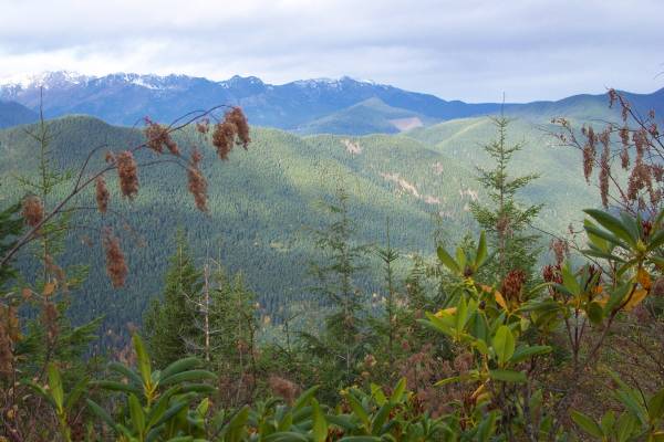 A view of the coast enroute to the refuge. Just to the right of center along the waterline are ships outside of Port Angeles. |