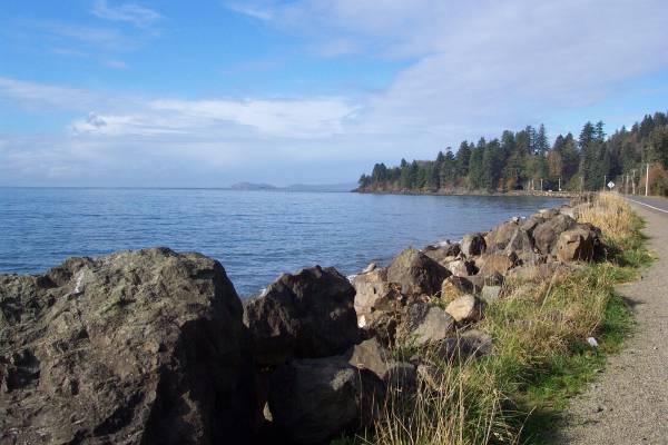 A trail leads to the waterfront. This is believed to be the location where Lewis and Clark originally landed and stepped ashore. |