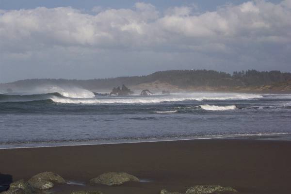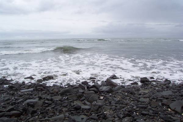 From the beach on the north Cape, the wind blowing against the incoming waves helps to create a striking scene. |