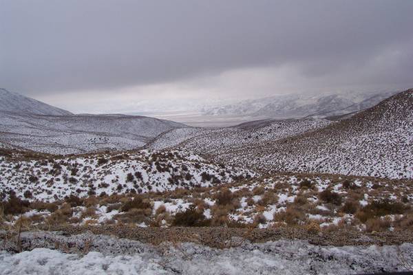 In Big Pine, I turned east onto Route 168. This road leads to the Bristlecone Forest, the location of some of the oldest living trees on the planet! I have visited here before, and a link to pictures from that visit can be reached via a link from my home page. The road inside the park was snow covered and closed, so I would not be able to visit the trees today.