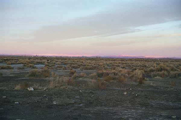 A view west towards the Fallon Navel Air Station and Fallon, with beautiful sun rays on the mountains in the distance. |