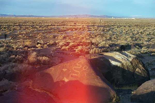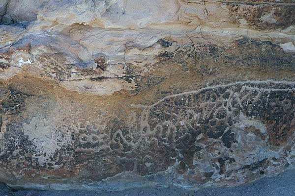 Trail through the area, along rock faces with ancient petroglyphs. |