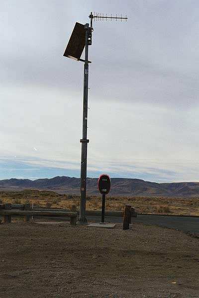 I continued east on Route 50 and over the next few hours, stopped at Sand Mountain, a very large sand dune that sometimes resonates (it was quiet while I was there.) I also passed by a bordello. As for a tourist thing, I called my sister from the "Loneliest Phone." To explain...Route 50 is nicknamed "The Loneliest Road" since most people take Interstate 80 across the west and Route 50 is quiet. Nevada plays up this title in several ways including sign posts, stamped Route 50 passports, referring to things as being the loneliest, including the telephone I used this morning. It sits on the side of the road with nothing around, is solar powered, and is connected to the phone system by antenna, as no wires are around! As for the name "Loneliest Road," I understand, as there were many times that I saw no cars for many miles.