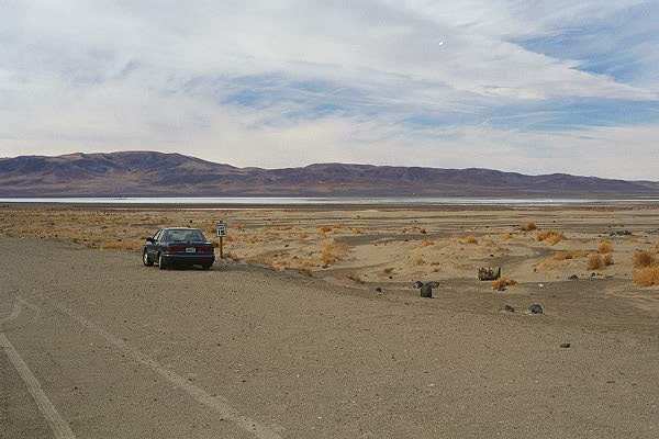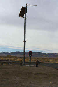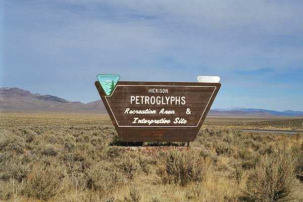 Entrance to the Hickison Petroglyphs Recreation Area, where I stalled the car. Not much civilization around! |