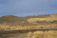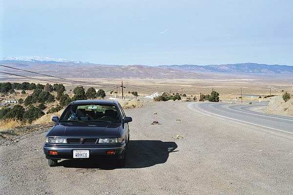 There is a lot of history along this road, and I stopped by many roadside displays located at Pony Express stations, old towns, and mining locations. Further down the road, I turned onto a gravel road to drive to the Hickison Petroglyphs Recreation Area. I drove slowly down the road as it was a bit rough, but then suddenly, I came across an intense washboard section. The car bounced around as I continued to slow down, and then it stalled. I attempted to restart the car, but it would not run. Ouch, I thought, as I looked back for a half mile towards the "Loneliest Road!" I had my ham radio two meter rig and my cel phone, and at worst, I could hike up one of the hills there to try to communicate. However, as I looked under the hood, I noticed my coil cable had come off and one spark plug cable came off the distributor cap. Very nice that this was the only problem! After putting things in their place, I continued down road and did a little hiking.