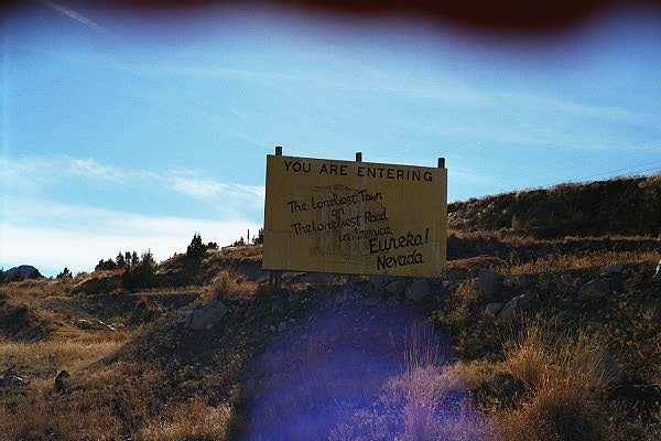 Entrance sign to Eureka, Nevada, with the "Lonliest" theme! |
